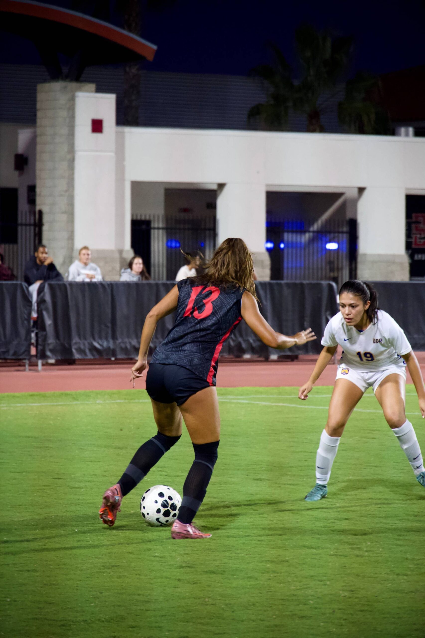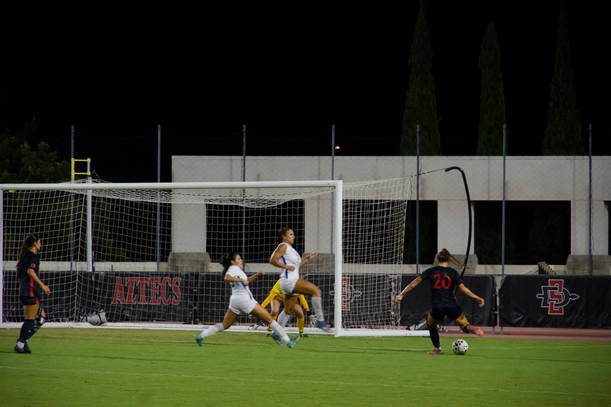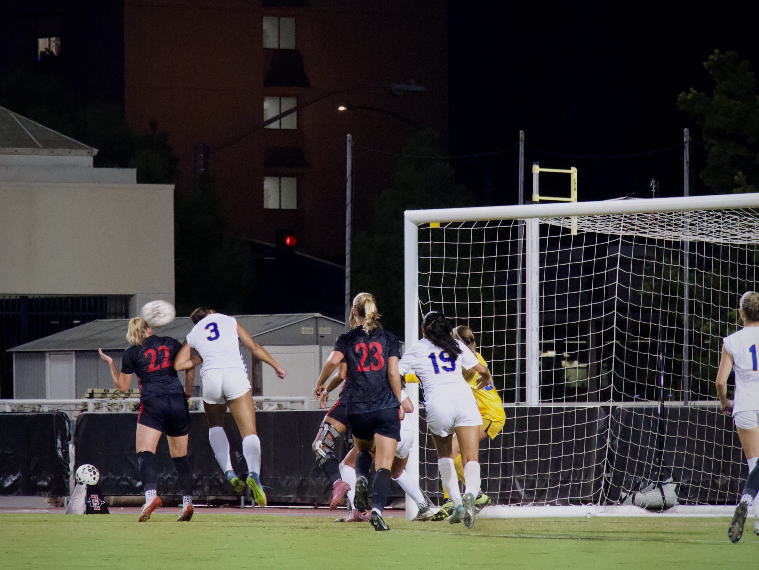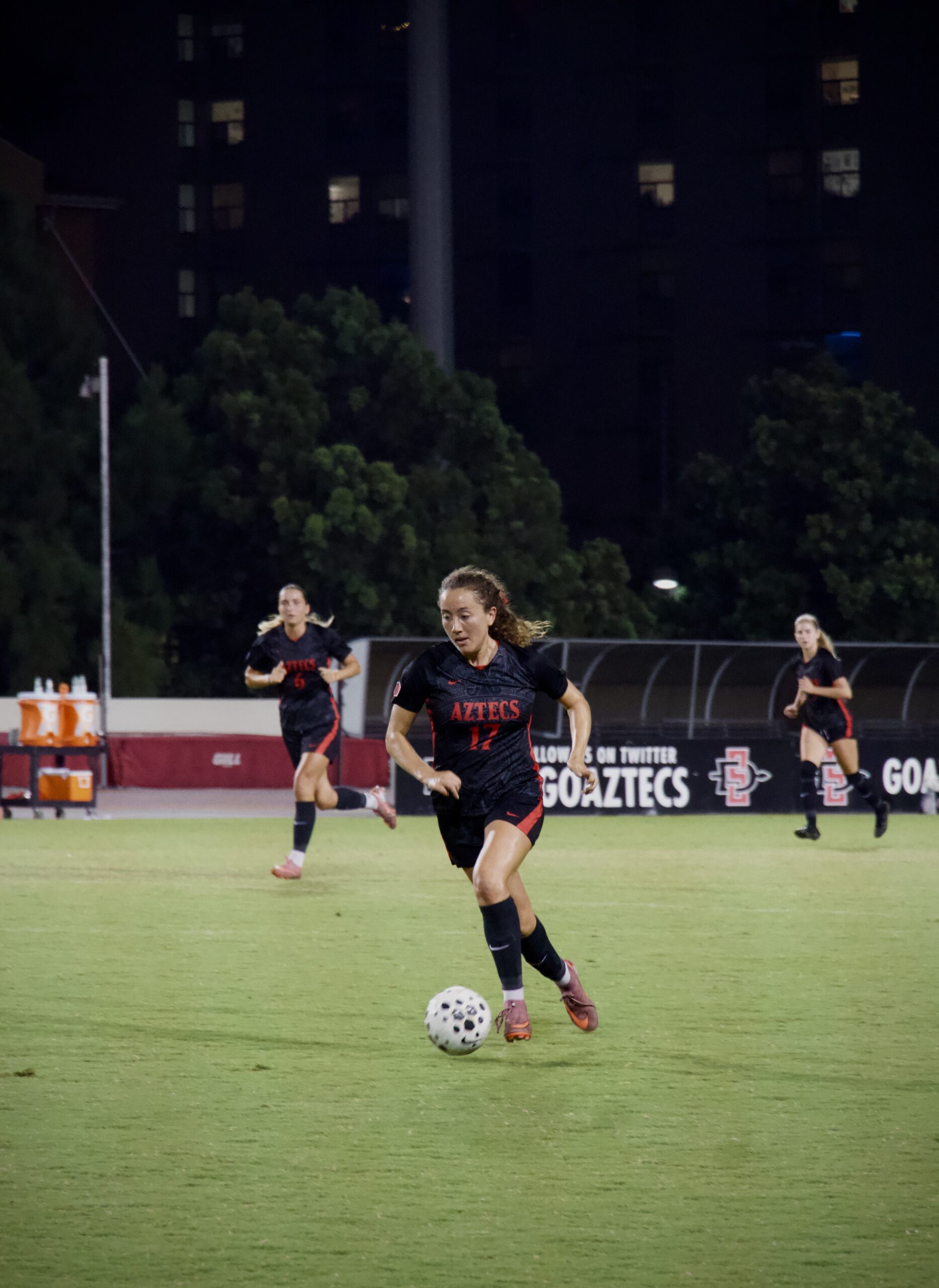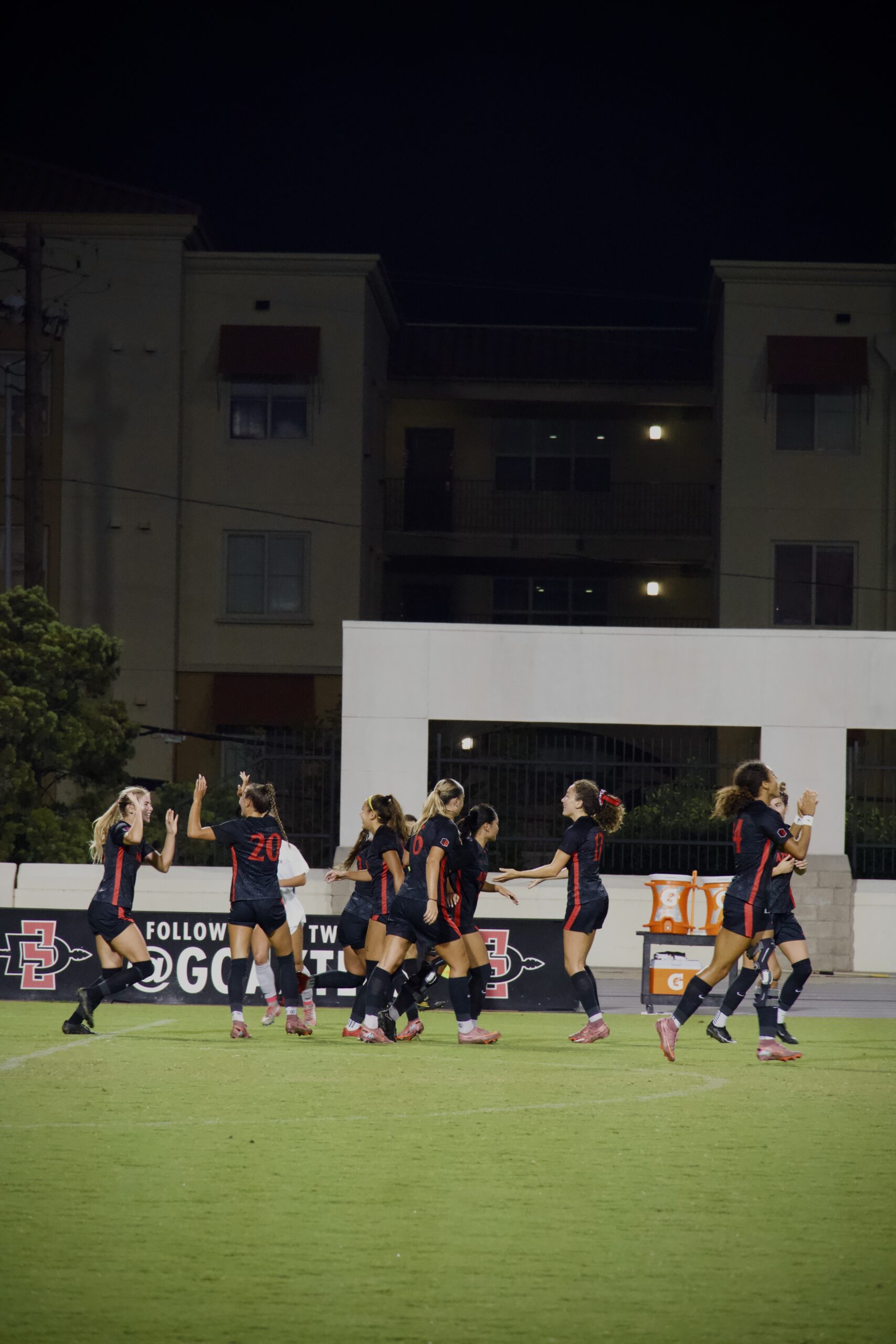 The San Diego State women’s soccer team scored two goals in each half while shutting out UC Riverside to pick up a 4-0 win on the SDSU Sports Deck on Sunday night. Here are some photos from the game captioned by one of KCR Sport’s photographers, Brianna Marbella.