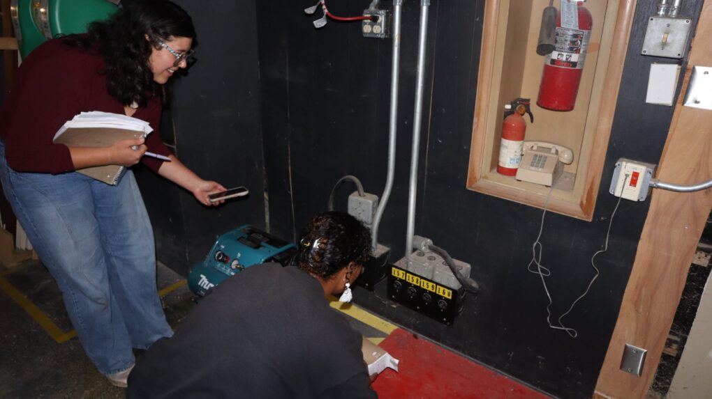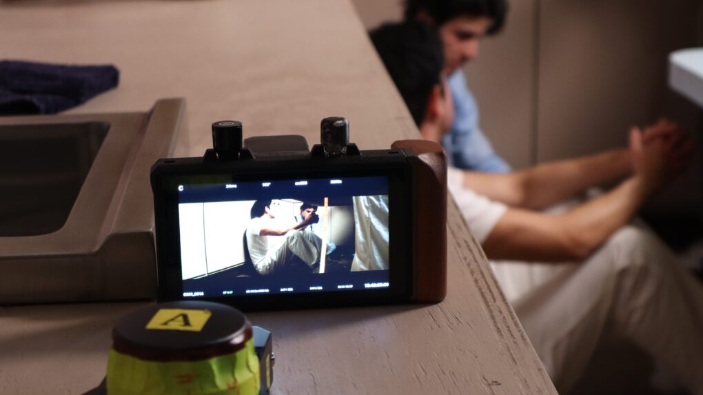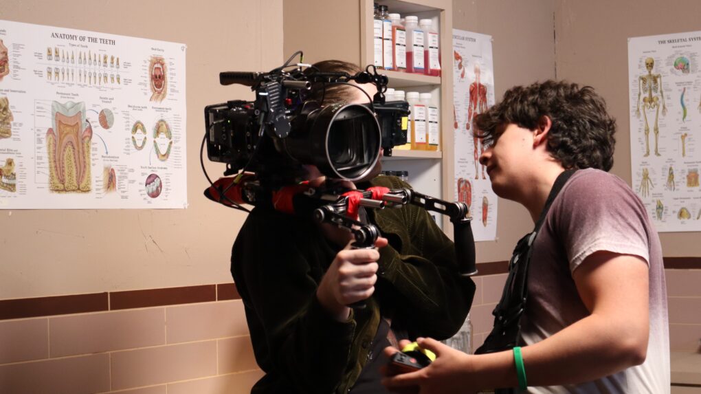 Director of Photography Griffin Edwards, switches from a stabilized camera to a handheld as First Assistant Cameraperson Oliver Castillo Penaloza aids in the transition.