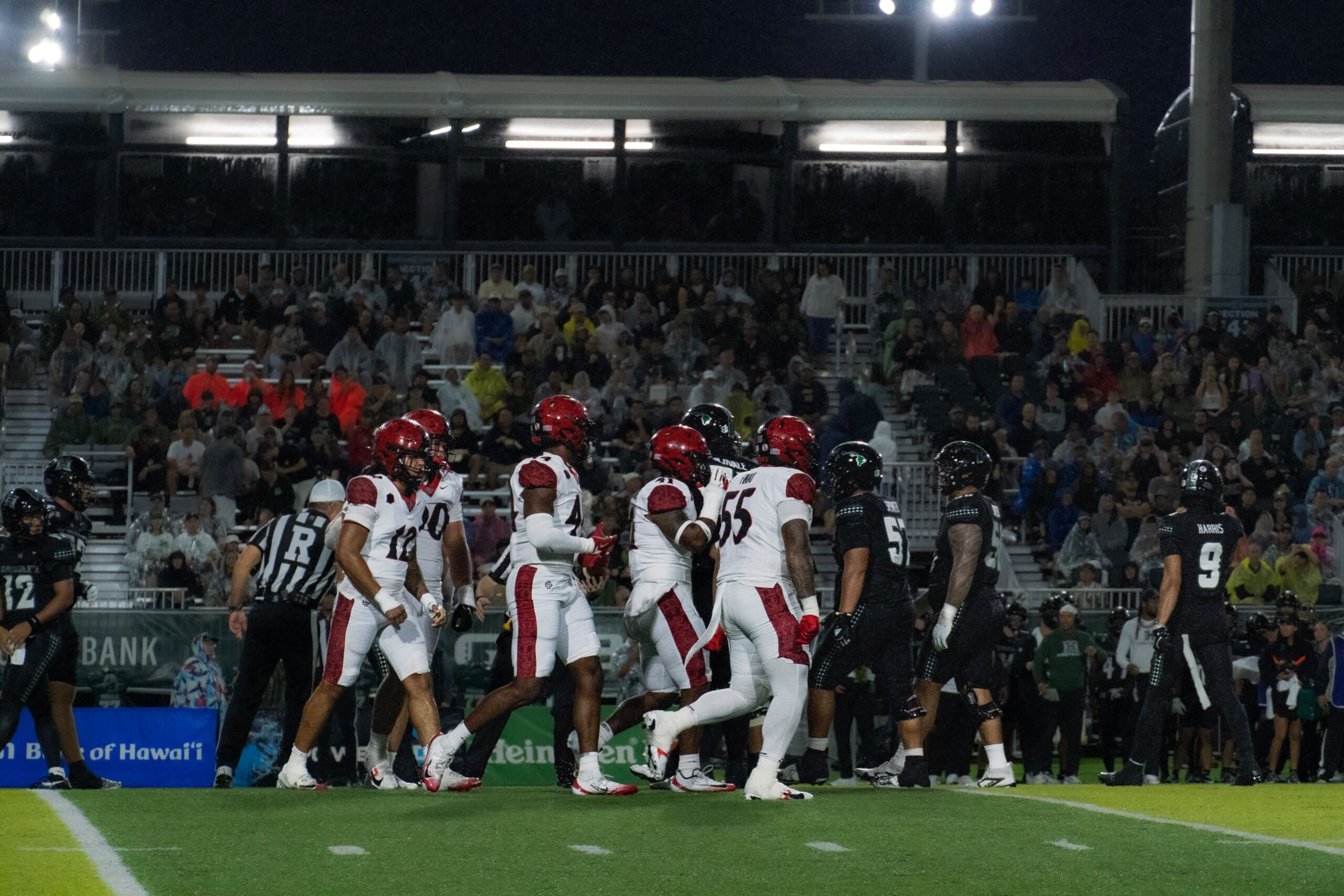 San Diego State football traveled to a rainy, humid night in Hawaii to face the Rainbow Warriors in a messy 38-6 loss. Here are some photos from the game captioned by one of KCR Sport’s photographers, Brianna Marbella.