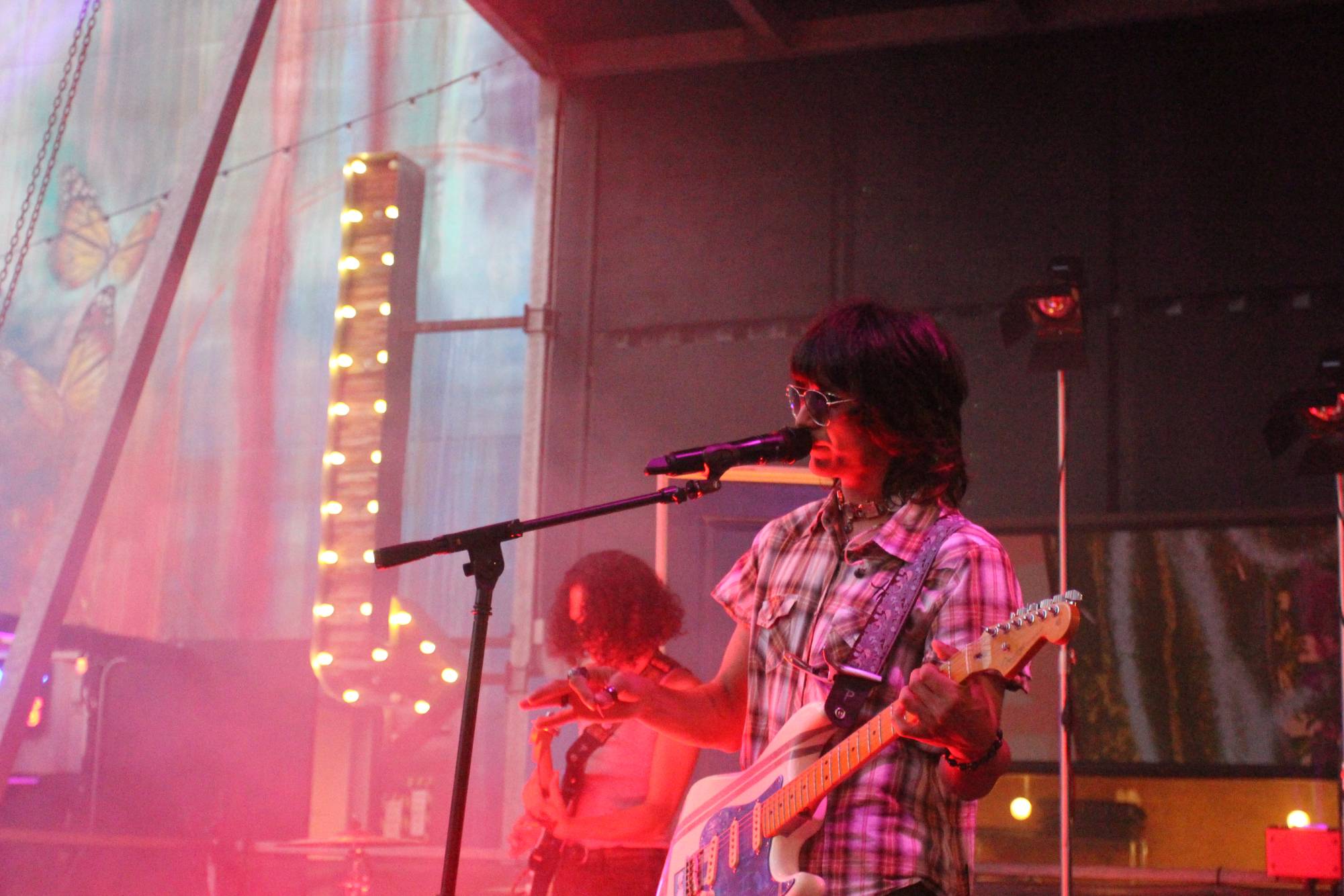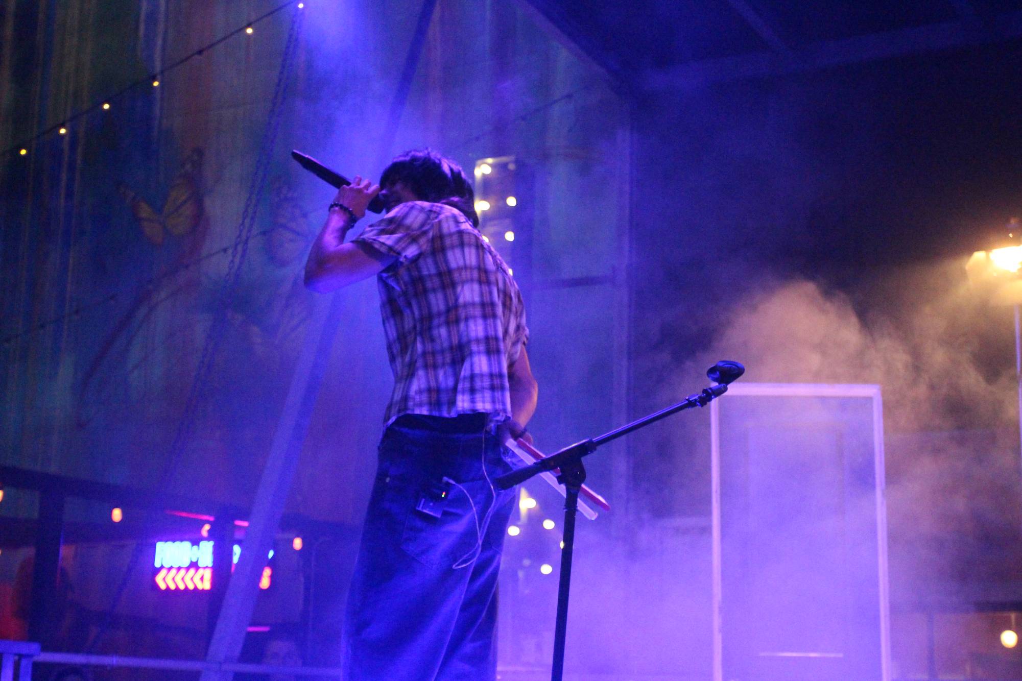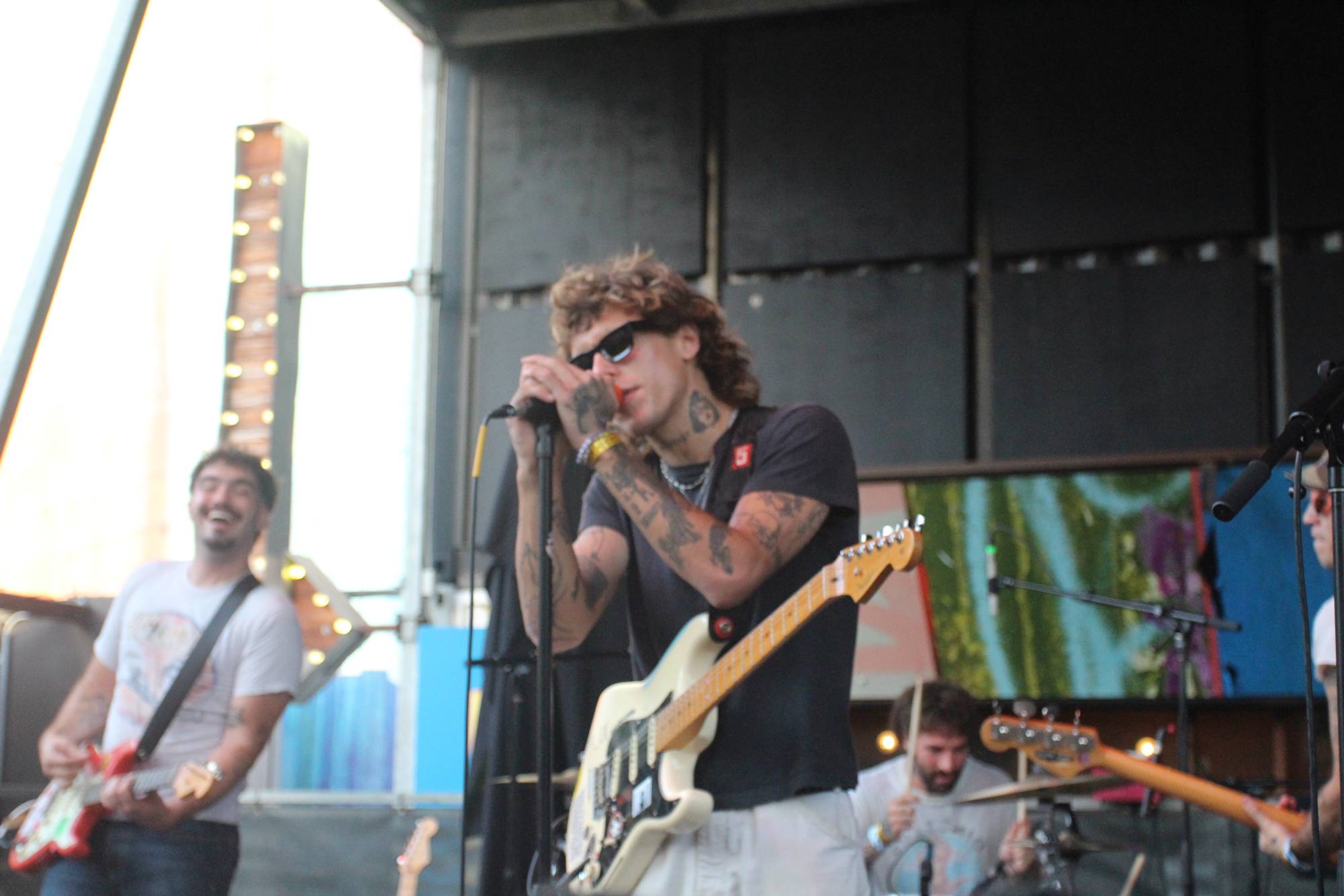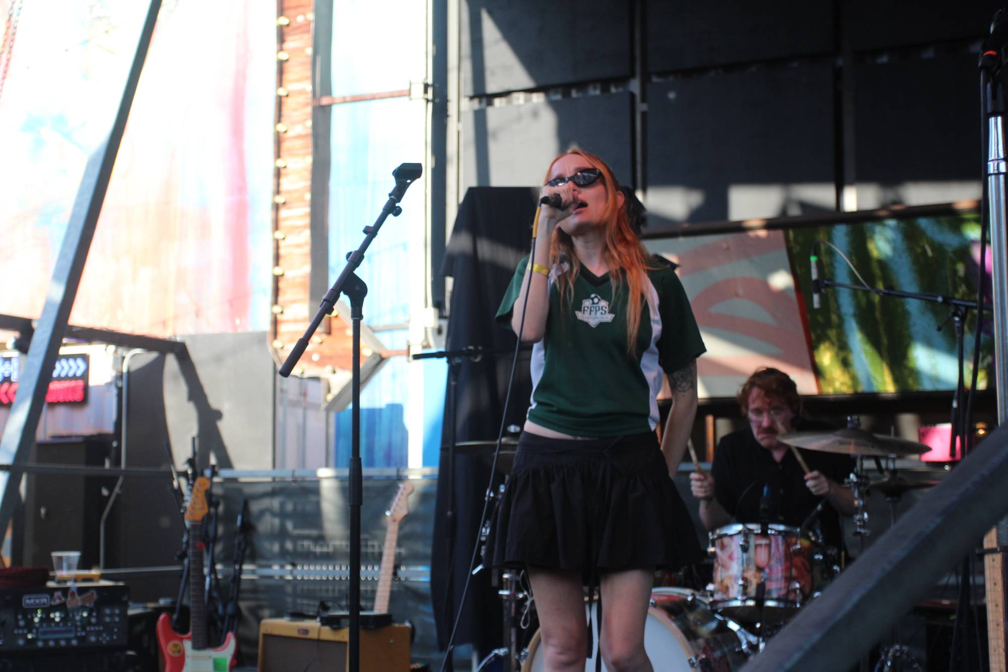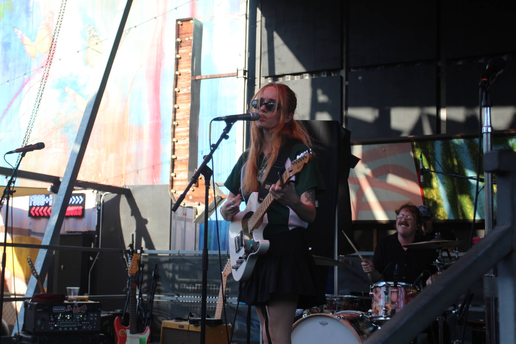 Theo Moss kicked off the evening, merging classic alt-rock nostalgia with a modern pop twist. Her music delves into themes of love, addiction, and self-discovery, offering listeners a reflection of her own growth. Before one song, she told the crowd it was about “if artist Jeff Buckley were a woman” — a concept she admitted was niche, but intriguing. She also performed a track called “Shotgun,” layering heartfelt lyricism over driving instrumentation. Originally scheduled for 5:30 p.m., doors opened just after 6, so Moss and her band began their set as people were still filing in, the late-arriving crowd gradually filling Quartyard’s open-air space. You can listen to Theo Moss’s music here