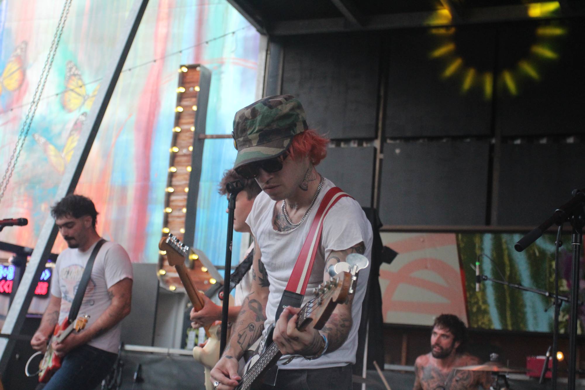 Los Angeles-based four-piece ALEXSUCKS wasted no time ramping up the energy as the second opener of the night. Their throttling guitars and pummeling drums had the crowd bouncing from the start. During “Gutter,” a fan in the front row told frontman Alex Alvarez he could play the song’s guitar part. Alvarez handed him his guitar, and the fan — named Jake—took the stage while the band played on, the lead singer spending much of the song shredding in the crowd.